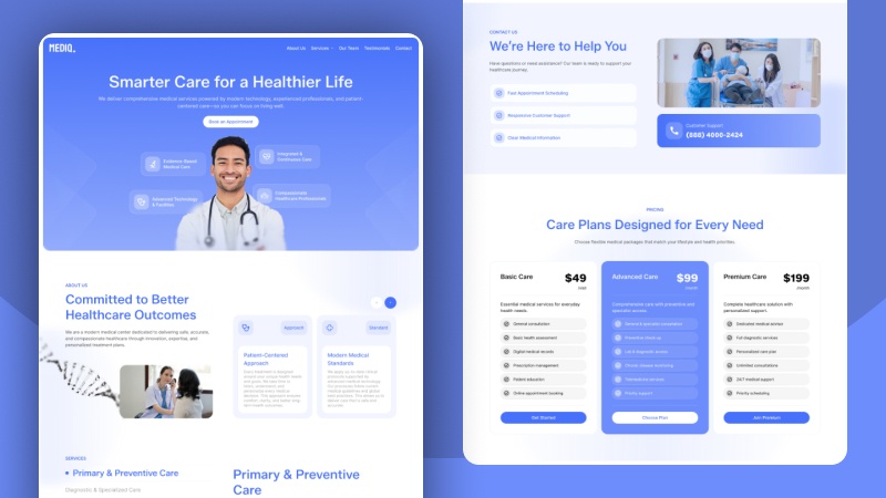 Mediq is a premium UI Kit designed to bridge the gap between professional medical services and a friendly patient experience. Crafted specifically for the global marketplace, this template balances modern aesthetics with a welcoming atmosphere, ensuring healthcare providers can build trust instantly with their digital presence.